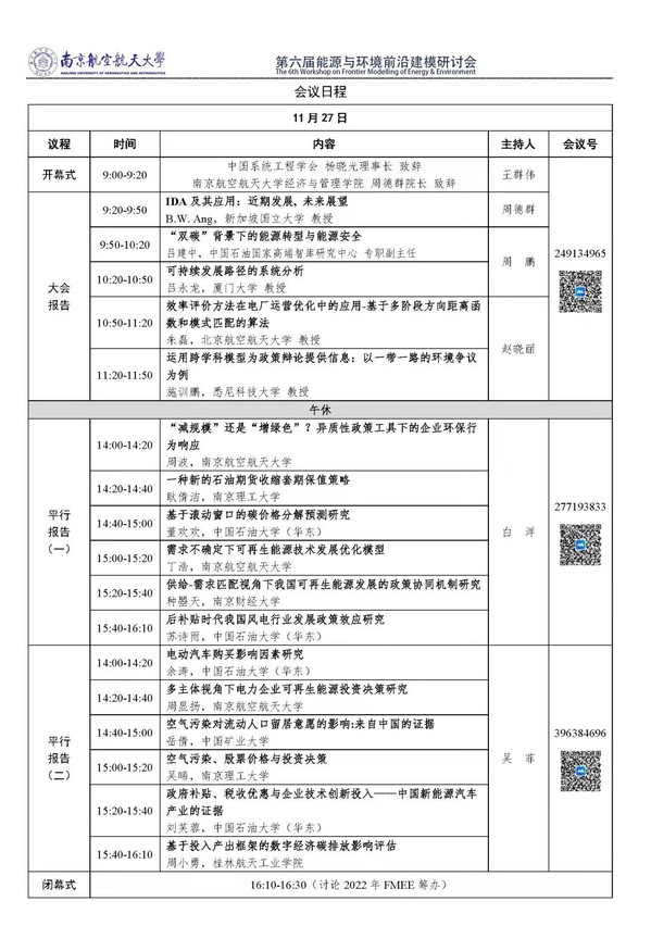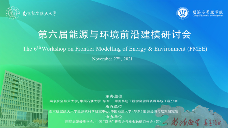 11月27日,第六届能源与环境前沿建模(The 6th Workshop on Frontier Modelling of Energy & Environment, FMEE)研讨会在中文成人网 成功举办。本次论坛由中文成人网 、中国石油大学(华东)和中国系统工程学会能源资源系统工程分会共同主办、中文成人网 能源软科学研究中心和中国石油大学(华东)能源经济与政策研究院承办,国际能源转型学会、中国优选法统筹法与经济数学研究会气候金融分会(筹)协办。会议得到《中国管理科学》、《环境经济研究》和《中国石油大学学报(社科版)》的支持。