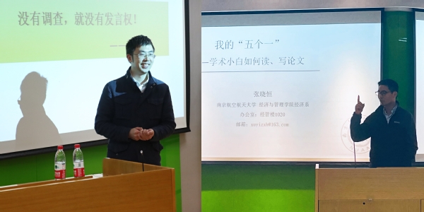 在开营第一讲中,刘思峰老师以“我的科研之路”为主题与同学们分享了自己走上科研之路的契机,真挚地向同学们传递了科研本身的乐趣与享受。在接下来的专题培训中,何沙玮老师借“站在巨人的肩膀上”与“套娃理论”的隐喻,生动地阐明了“一流的科研需要一流的学术信息”这一重要科研素养;张晓恒老师围绕“学术小白如何读论文、写论文”进行细致解答,强调了积累、方法以及信心是科研道路上最不可或缺的要素;何昌清老师联系自身经历,建议同学们尽早规划职业生涯,并就主题“管理学实证研究方法”展开指导;2018级博士研究生谭笑就“管理科学的博大精深”主题发表了自己的心得体会,并通过列举生活实例、引用专业术语等途径,使内容达到学术性与引导性的高度统一。