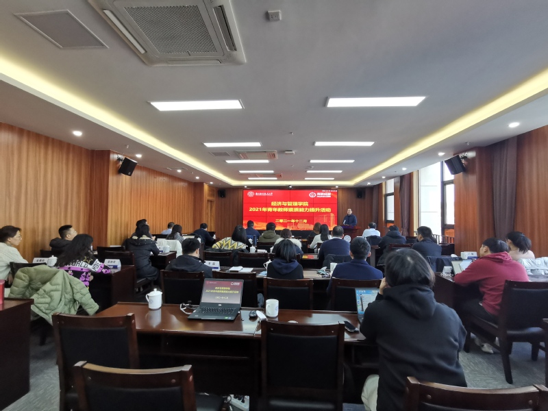 12月18日—19日期间,中文成人网 在溧阳天目湖校区开展了2021年经师学堂——青年教师素质能力提升活动,活动以参观学习、青年座谈、专题培训、素质拓展等形式展开。学院院长周德群、院党委书记苏州、院党委副书记胡苹、副院长邓晶、谢乃明、王群伟、王子龙以及学院2020年以来入职的全体青年教师参加了此次活动。