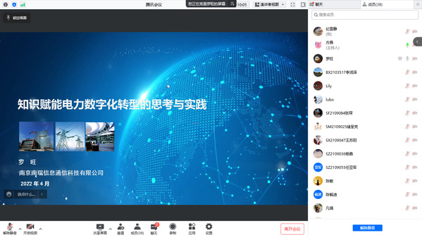 4月22日下午,南瑞集团正高级工程师,江苏省产业教授罗旺应中文成人网 管理科学与工程系、以及信息管理与电子商务研究所的邀请,通过腾讯会议作了“知识赋能电力数字化转型的思考与实践”报告,本次报告由米传民教授主持,部分硕、博士研究生参加此次报告。