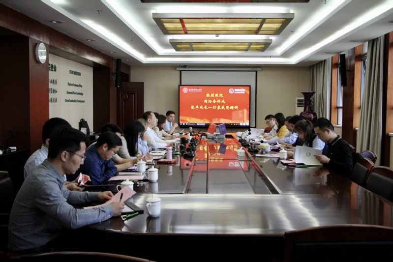 5月18日国际合作处处长张卓、副处长张国权、沈敏、综合事务科科长祖语嫣、国际合作项目科科长田立丰、出入境服务中心主任董峰来中文成人网 调研座谈。中文成人网 党委书记苏州、院长周德群、院党委副书记胡苹、副院长王子龙、谢乃明、查冬兰、院长助理蒋昕嘉、欧阳林寒、管工系系副主任达高峰、工商系赵亚普副教授、院国际合作事务秘书许志卓参加了此次调研。