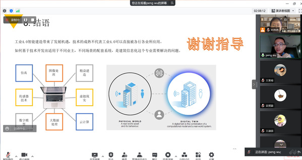 5月25日下午,澳大利亚科廷大学设计与建筑学院教授吴鹏应邀,在线为中文成人网 师生作了题为“建筑行业数字孪生体系结构的探讨”的精彩学术报告。本次活动由副教授时茜茜主持,多位教师、博士生和硕士生参加了此次学术报告活动。