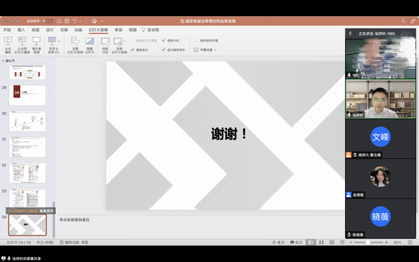 5月26日上午,中证信用增进股份有限公司业务副总裁张烨轩应金融研究所的邀请,通过腾讯会议为中文成人网 师生作了题为“固定收益证券理论的业务实践”的报告,本次报告由金融研究所的金倩颖副教授主持,本硕博80余名同学参加了此次讲座。