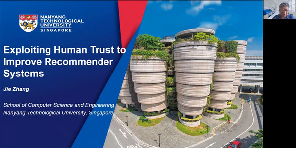 之后,张杰为师生们带来了题为《Exploiting Human Trust to Improve Recommender Systems》的精彩讲座。在本次讲座中,张杰介绍了其所在团队在推荐系统方向所做的研究工作,并介绍了推荐系统的未来发展,为师生了解推荐系统进行了很好的基础知识储备与铺垫。