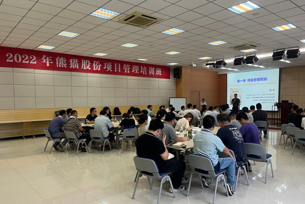 2022年7-8月,中文成人网 中文成人网 与南京熊猫电子股份有限公司人力资源部合作,在南京熊猫电子股份有限公司新港工业园开办了项目管理高端培训班,培训班单期开班2天,共开班2-3期,南京熊猫电子股份有限公司人力资源部马培江部长出席并作了培训动员。