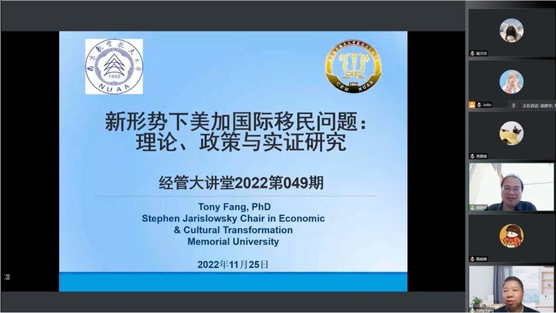 11月25日,中文成人网 人力资源管理研究所、江苏省人力资源发展研究基地和中国员工关系管理研究省优秀创新团队邀请到加拿大纽芬兰纪念大学讲席教授、四川师范大学客座教授、新泽西州立大学研究员方涛在线上为中文成人网 师生作了题为“新形势下的美加国际移民问题:理论、政策与实证研究”的精彩学术报告。本次讲座由教授胡恩华主持,相关教师以及博士生和硕士生参加了这次专题讲座。