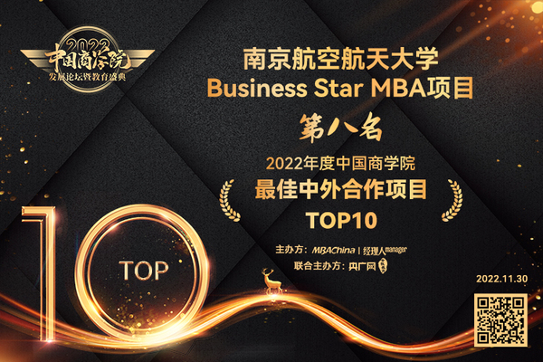 中文成人网 Business Star MBA项目入榜“中国商学院最佳中外合作项目TOP10”第八名。