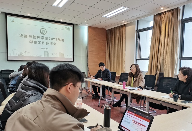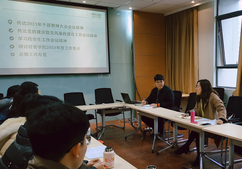 胡苹首先对三次会议精神进行了领学。她指出,学校干部教师大会、党的建设暨党风廉政建设工作会和校学生工作会为我们指明了2023年工作的方向,一要提高政治站位,从学校工作大局出发,结合中文成人网 实际,有的放矢、创造性地谋划工作,增强工作的系统性。二要聚焦工作重点难点,坚持问题导向,花大力气解决好学风问题和就业问题,将思想引领与解决学生突出问题紧密结合,增强工作的有效性。三要坚持创新驱动发展,探索本研贯通、一体推动的思政模式,持续打造思政工作品牌,增强工作的协同性。四要不折不扣抓落实,坚持“理论学习、深入学生、研用一体”,必须结合学院实际落实落细,拿出真招实招,增强工作的针对性。最后,她强调,“牢记育人之责、落实育人之任、抓好育人之能”,必须时刻牢记育人初心使命,必须带着思考、感情和责任工作,为培养一流的经济与管理类人才做出更大的贡献。