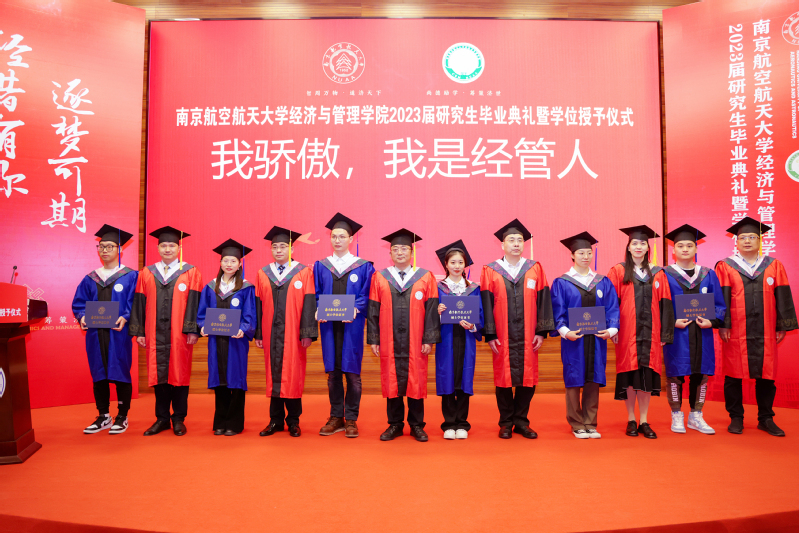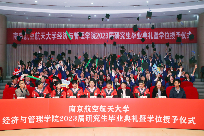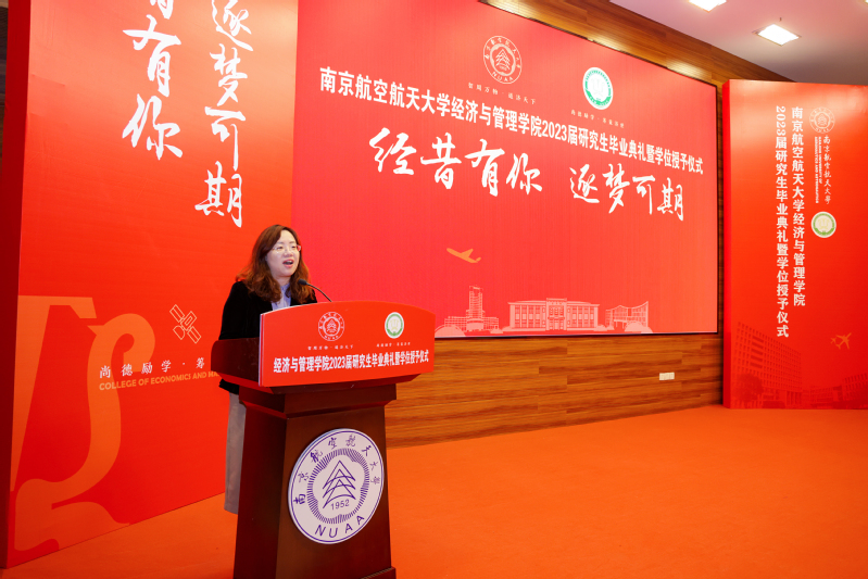 毕业生代表何亮讲述了他作为一名经历者在读研期间的数个“第一次”,也表达了作为一名见证者看到学院荣誉墙再添硕果、学科发展再上新台阶时的骄傲。他提到“‘尚德励学、筹策济世’只需一眼,便是整个人生的座右铭”。他代表全体毕业生感谢学院三年的辛勤栽培,同时号召全体毕业生要传承南航的红色基因、放飞志在长空的蓝色梦想!
