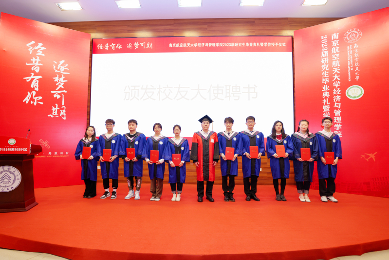 院党委书记苏州为2023届研究生院友大使颁发了聘书。作为院友的代表,“院友大使”们即将在毕业后,成为院友之间、院友与母校之间交流合作的桥梁。