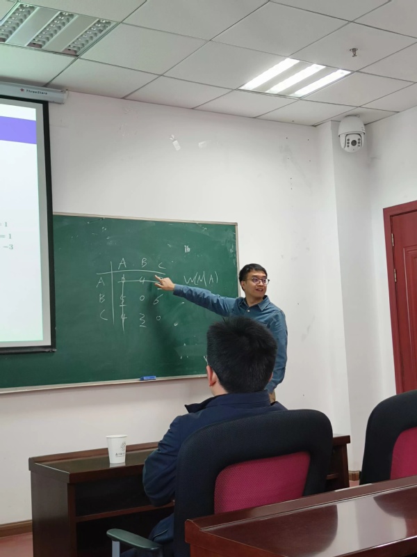 随后,徐素秀向师生们介绍了目前有关车位共享的权威研究,分析了各类问题的特点及其差异,并引导师生们从现有研究中发现问题,激发了学生创新性思维。徐素秀指出针对私家车位共享问题,现有研究主要基于TTC方法,而TTC方法实现帕累托最优并不能保证较高的社会福利,若将现有拍卖机制直接应用私家车位共享问题中,则会导致第三方平台的预算赤字,由此引出徐素秀最新研究:提出基于规模控制的拍卖机制,实现较高的社会福利及平台的预算盈余。接着,徐素秀举了一系列简单易懂的VCG例子,详细介绍了其研究中模型的逐步迭代过程及其原理,条理清晰,深入浅出。