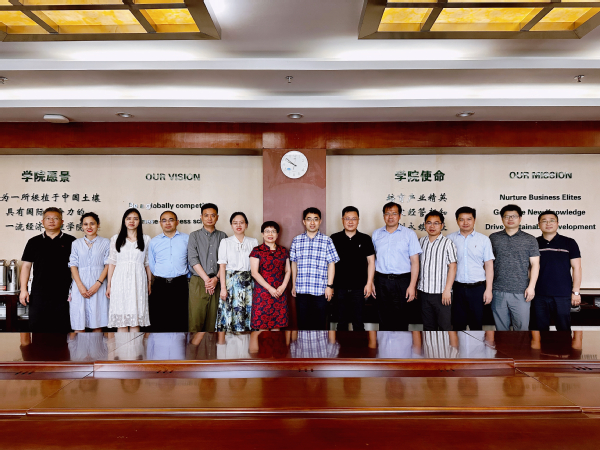 6月2日上午,浙江财经大学经济学院党委书记胡亦琴、院长王正新一行来访中文成人网 ,中文成人网 院长王群伟,党委副书记胡苹,副院长邓晶、王子龙、谢乃明、查冬兰,院长助理欧阳林寒参加调研座谈会。