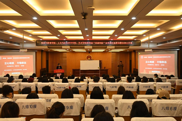 最后,杭育新结合习近平总书记关于廉洁的重要论述和青年人的特点,用3个“一”、5个“关”、5对“关系”和3个“注重”带领大家系统学习和思考,勉励同学们做政治上明白人、作风上的实在人、纪律上的清醒人,坚守道德底线、不碰纪律红线、远离法律高压线,如此才能行稳致远,走好平稳人生路。