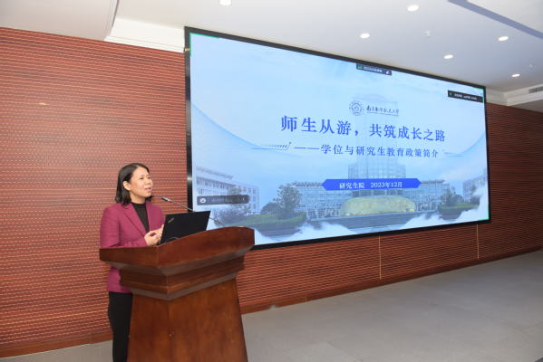 随后王英围绕学位与研究生教育政策展开详细介绍。重点讲解了学校研究生教育基本情况、培养政策、条件保障等方面给予青年学者的支持。她表示,学校将用灵活多元的政策机制,营造良好的学术生态,提供人才成长急需的各方支持,为青年人才教学、科研全过程保驾护航。