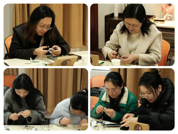 随后,辅导员刘婷炜带领大家体验了非遗工艺点翠的制作。作为中国传统金银首饰制作工艺,点翠承载了中国传统文化中女性对于美的期待与追求,体验制作的过程也是感受非遗之美的过程。